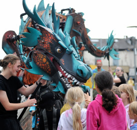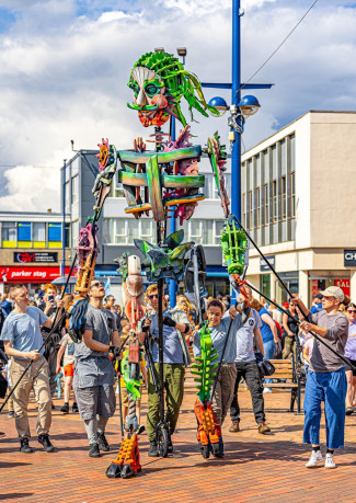 This powerful outdoor walkabout blends physical theatre and puppetry to share a poignant story of climate emergency, connection, and hope. Created for families and festival audiences, Eko’s expressive movement and colossal presence spark unforgettable moments of interaction and discovery.