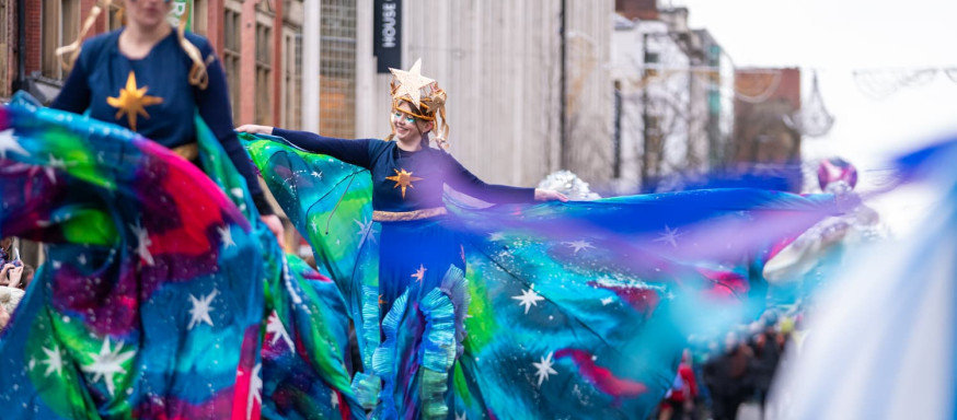 Blending heritage with contemporary culture and rooted in women-led carnival art, Cabasa mix traditional textile craft with powerful storytelling. They celebrate heritage whilst pushing boundaries, creating work that’s large-scale, visually stunning, and deeply meaningful.