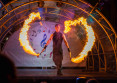 Larger fire displays are complete with flaming stage decorations; fire poi, fire snakes, long staff, double staffs, lycopodium fire swords, pyro poi, flamethrower.