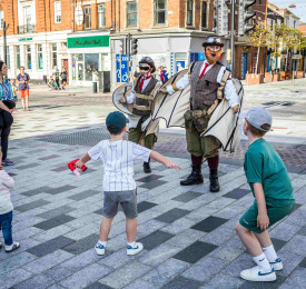 This playful walkabout act combines puppetry, comedic audience interaction, and plenty of chaotic fun.