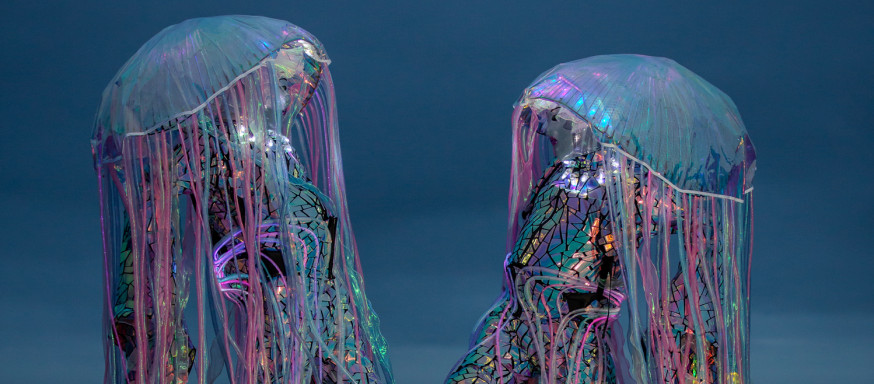 Mark met Adrian in 2005 and taught him how to stilt walk. He was a natural, so together they started to create more costumed characters.