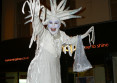 The stunning snow white Snow Queen on stilts blasts about the streets as the icicles that hang from her fingers tinkle like glass. She blows the north wind into people's faces and sprinkles them with snow as her blue lips whisper icy greetings into their frost bitten ears.