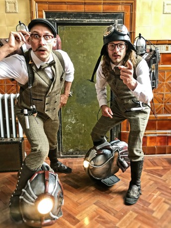 Fabulous Contraptions! is a charming, innovative walkabout act featuring two intrepid time travellers… from the past. The Captain and The Professor glide effortlessly on their Time Machines but are simply confounded by the incredible technology all around them. They seek answers in the name of science from everyone they encounter along the way.