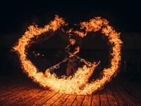 A 5-8 minute solo fire dance performance, or 8-10 minutes featuring spectacular pyrotechnic poi, flamethrowers, and exploding fiery swords!