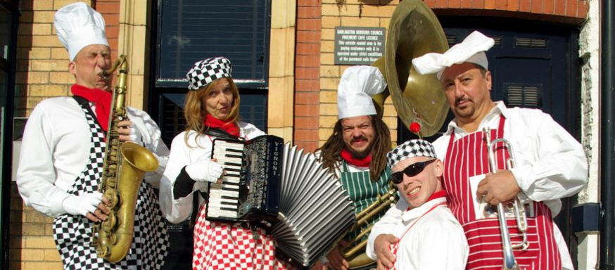 Ali Wood- Celebratory & visual theatre background, W.S.I., Whalley Range Allstars, accordion with Last Chance Saloon Danceband, previously The Real Macaws.